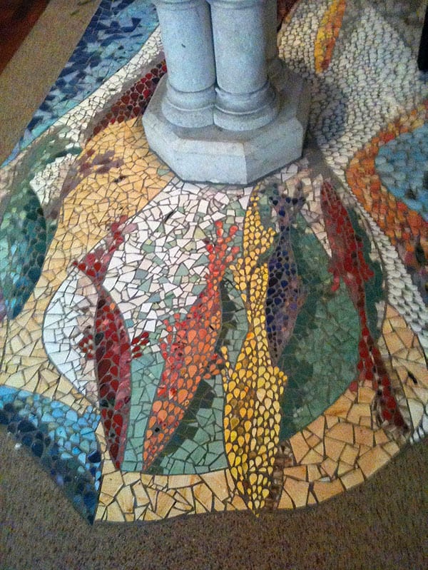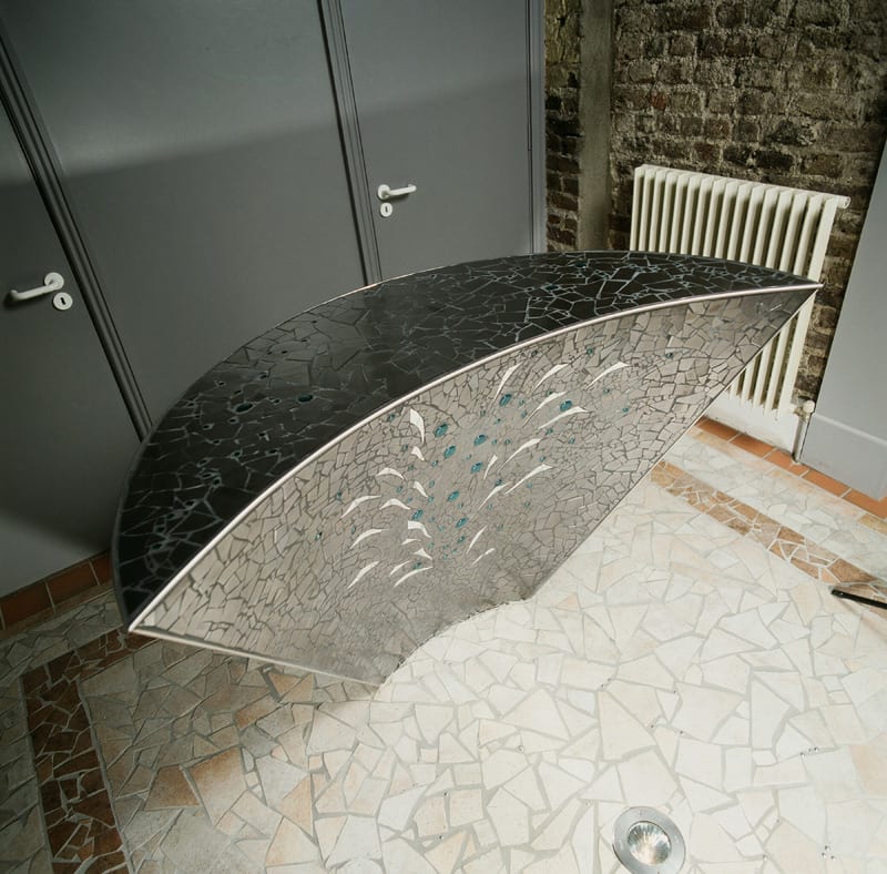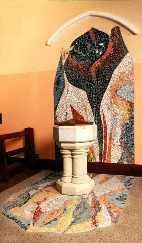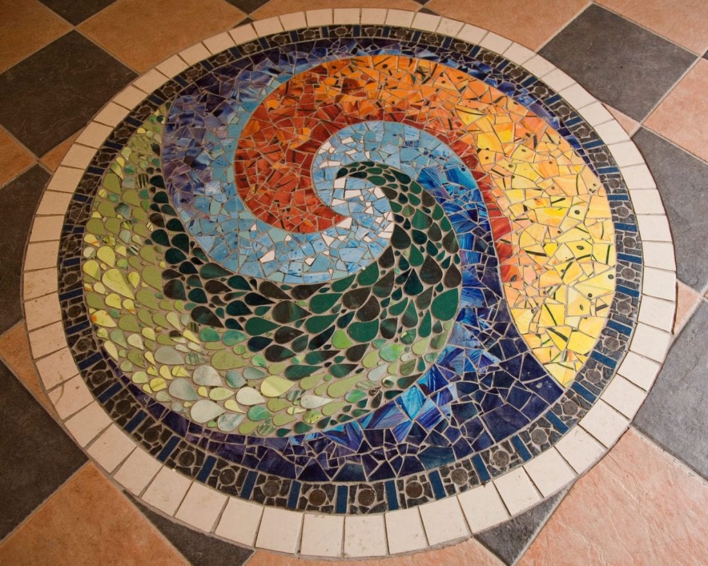 "Spiral" Ceramic and metal mosaic floor-panel in 'The Oratory' in Dun Laoghaire
